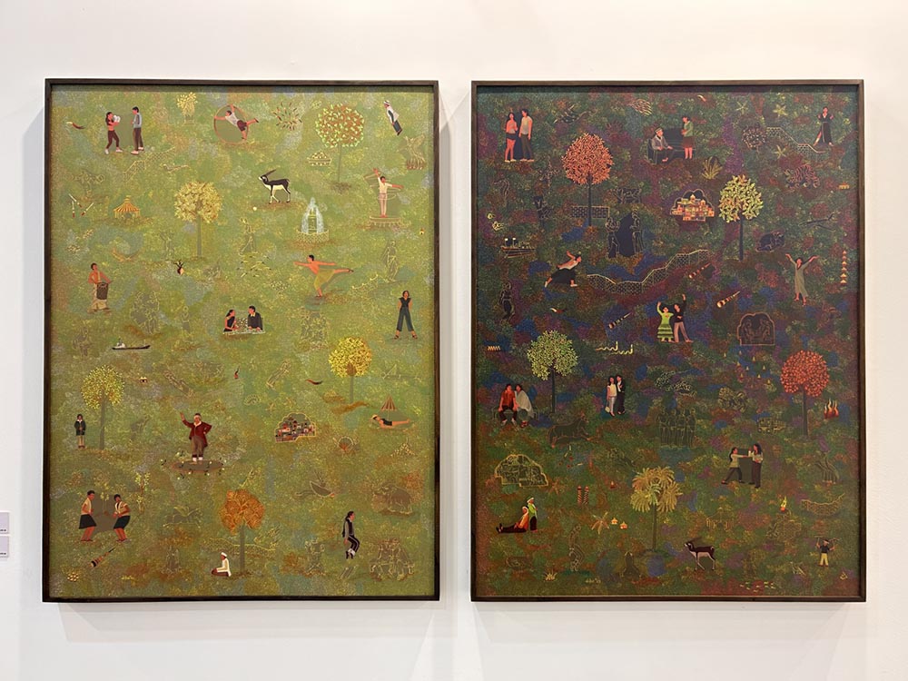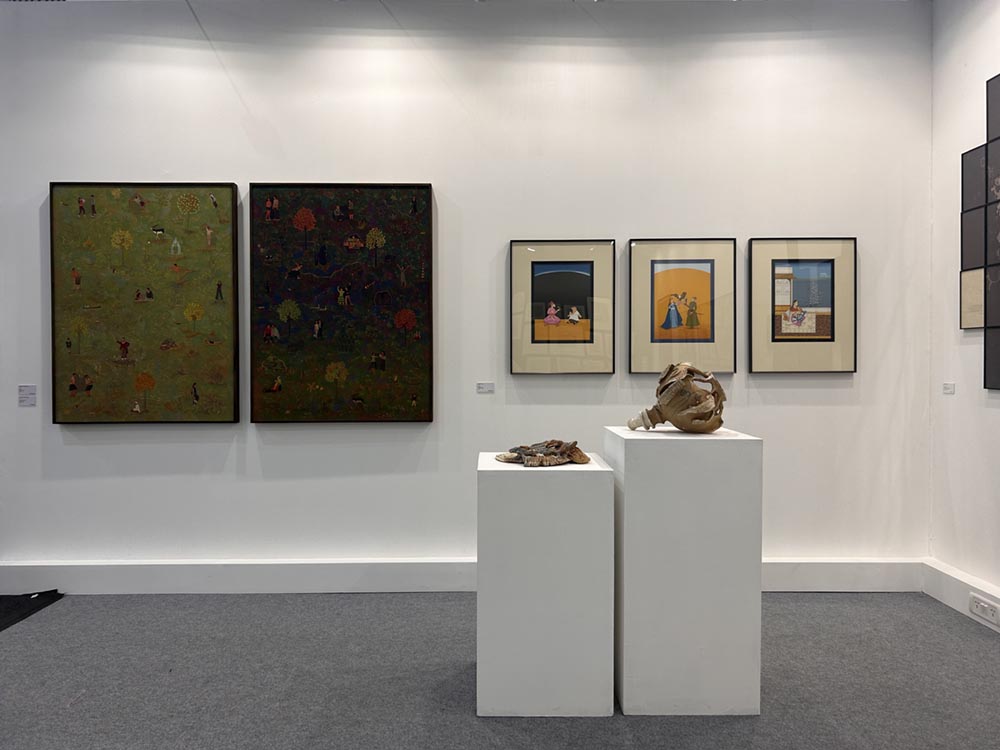 Artists from across South Asia have been delving into the possibilities of re-infusing traditional forms of art with new media creating idioms which lead to rethinking and reworking of the existing paradigms surrounding contemporary art. LATITUDE 28 brings forth a curated presentation of some of these South Asian artists whose practice encompass experimentation with mediums to explore themes of migration, climate change, biodiversity, mythology and socio-political issues. Within this, some artists’ works are reflective of a neo-miniature practice that infuses traditional schools of painting with contemporary new media and popular culture. Going back to the two of the most significant forms that are drawing and sculpture, the miniature section is juxtaposed with drawings of modern masters as well as sculptural works by contemporary artists who have ventured into unconventional ways of intermixing of material such as paper and ceramics. Alluding to mythological/ historical narratives in the modern context, these artists locate their identities at the crux of historicity and contemporaneousness.
