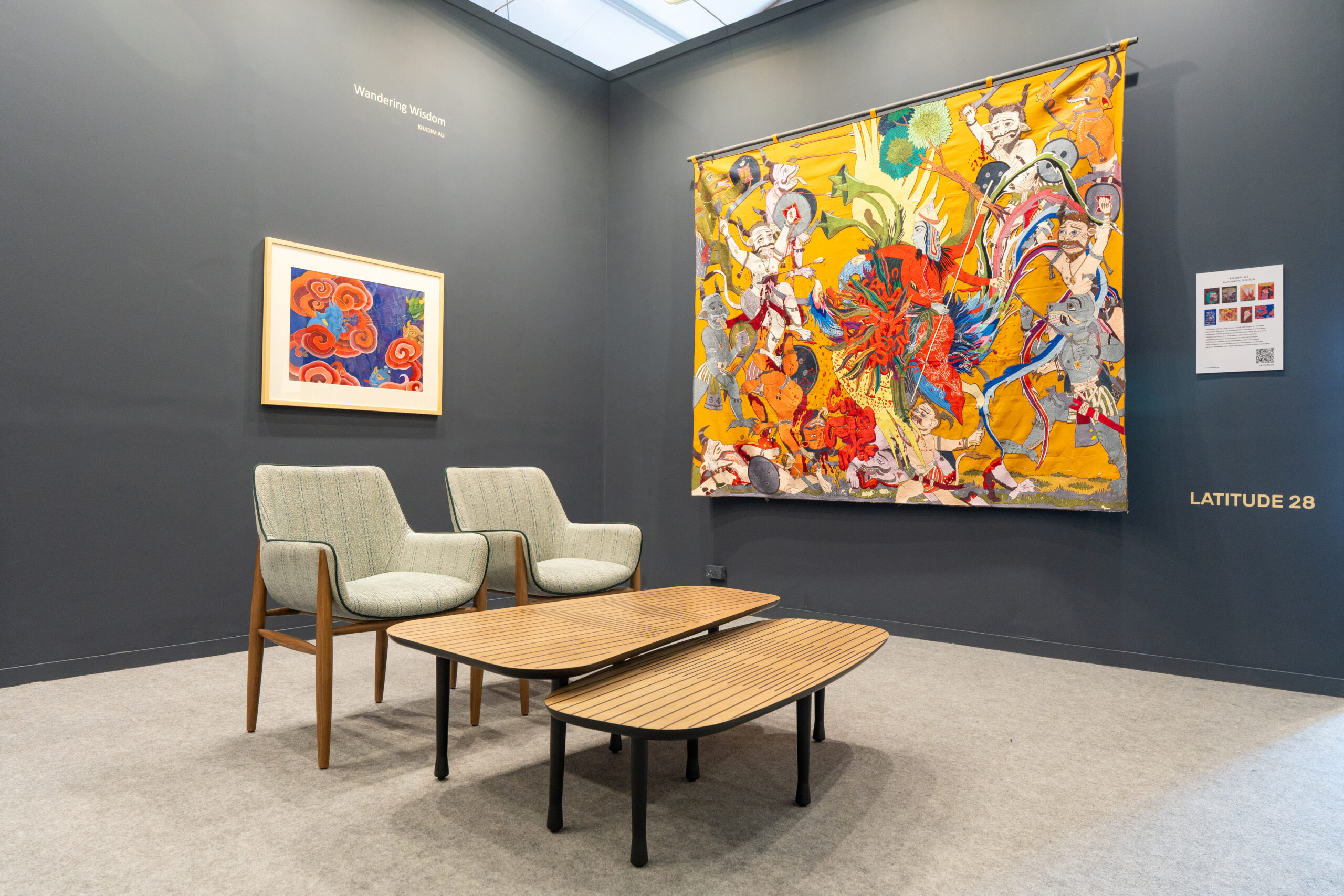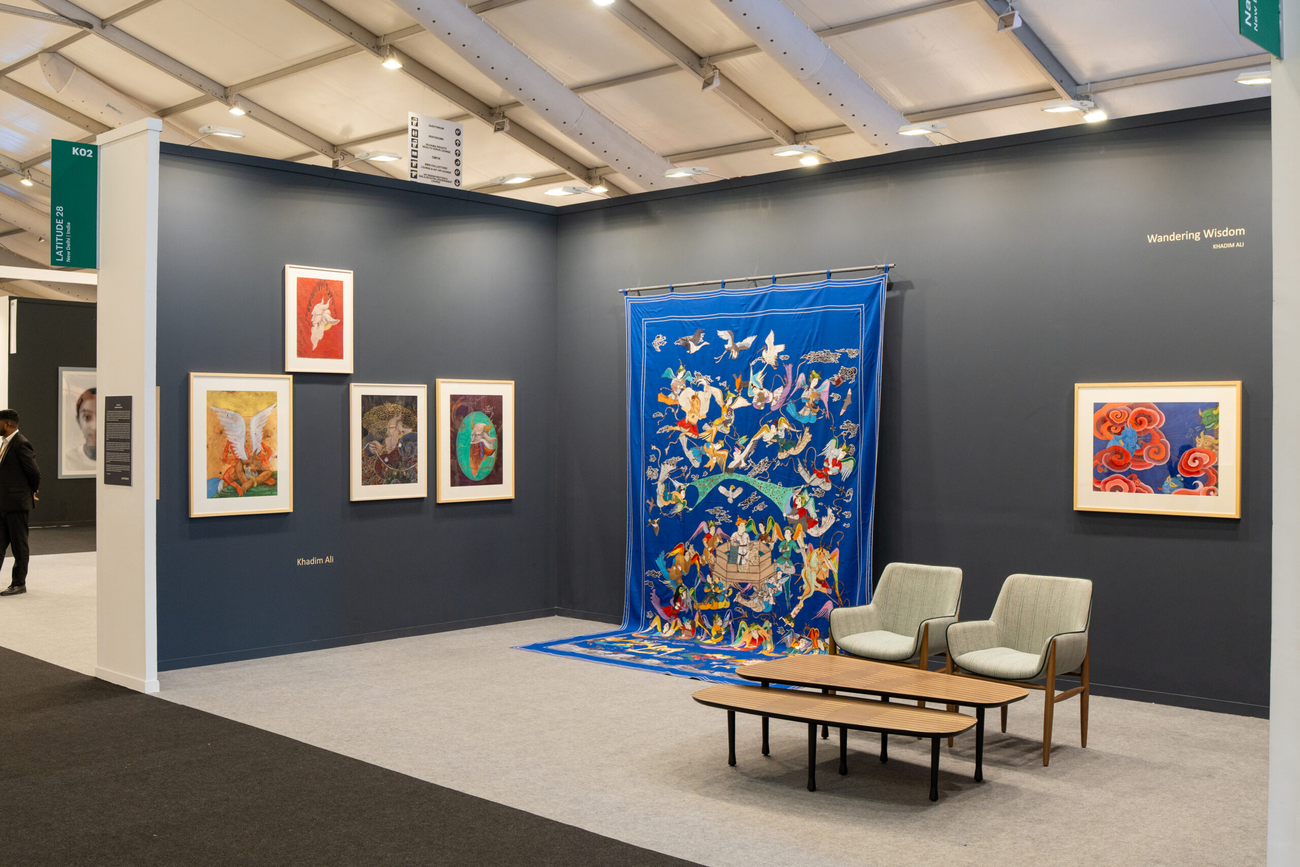 A special solo booth spotlights Khadim Ali, the Afghan-Australian artist whose Hazara background drives his deep look at exile and cultural survival. Trained in Mughal miniatures, his pieces weave demons and ancient tales to transform stories of suffering into symbols of endurance, inspired by his family’s experiences of displacement. The showcase of his unseen tapestries and paintings in the focused booth will highlight his skill in merging folklore with current critiques, creating a quiet spot for reflection amid the fair’s buzz.
