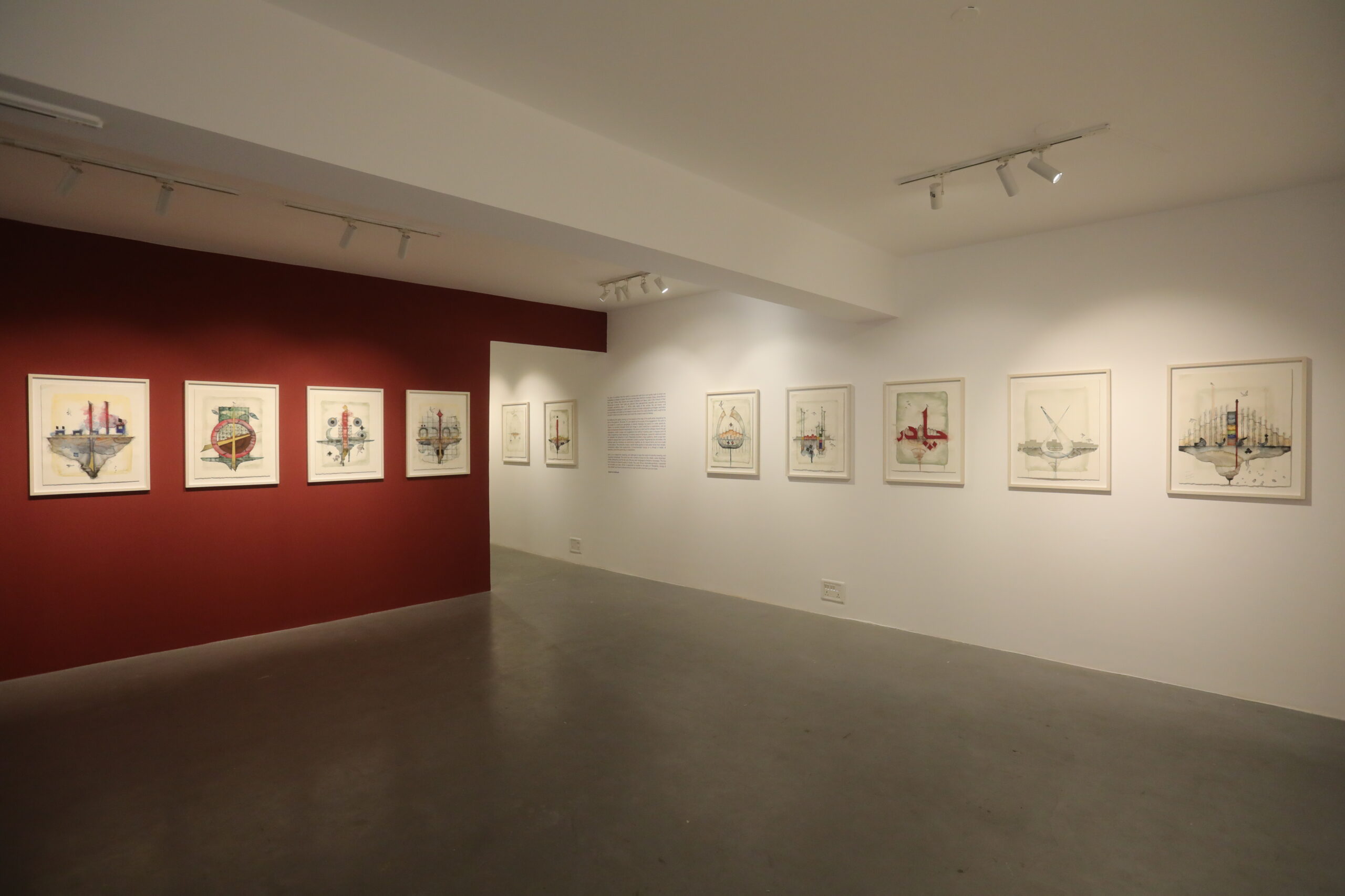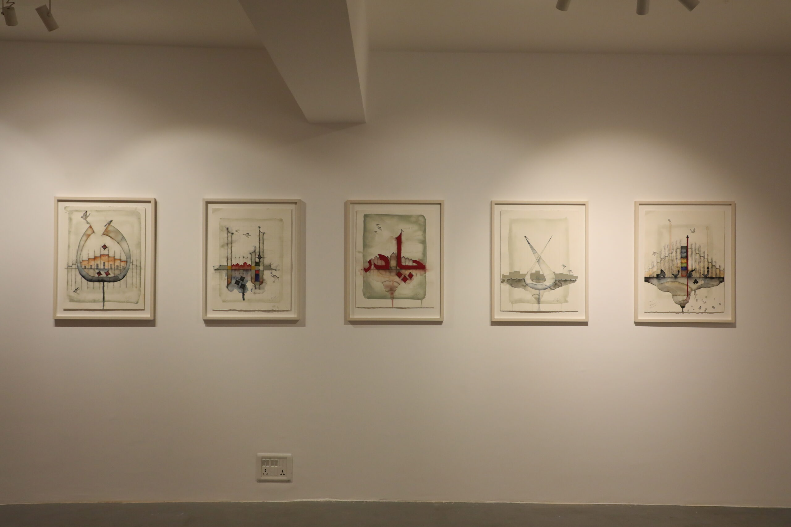 For Jani, it is evident that the world is constructed with form and words, both of which are malleable on sheets of paper. His work invokes Italo Calvino’s Invisible Cities, where Marco Polo says: “Cities, like dreams are made of desires and fears, even if the thread of their discourse is secret, their rules are absurd, their perspectives deceitful and everything conceals something else […].” What rules apply to the arches, the tall towers and subterranean landscape in Jani’s work? Just as a master calligrapher privileges aesthetics and symmetry, and relies on the viewer to know where the nukta (diacritic mark) ought to be placed in order to be able to read, Jani trusts the viewer to read his Verses.