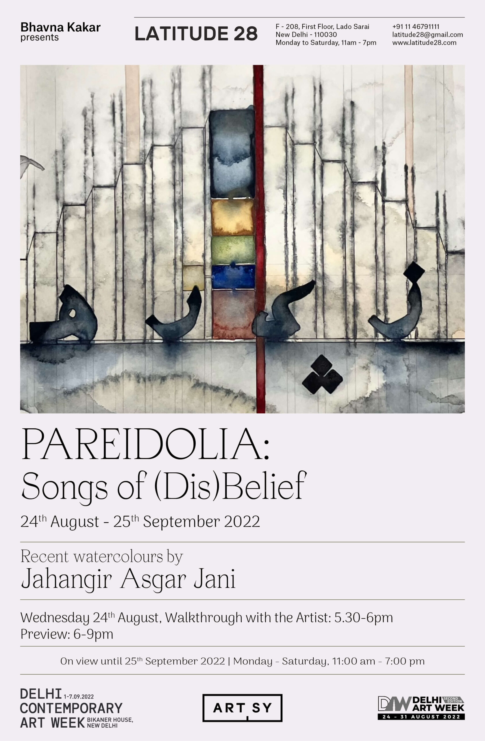 Somethings are understood by instinct, and others are learned comprehension. While some symbols are instantly recognisable, do they always mean what you think they mean? Just as all cyphers cannot be cracked with a singular code, Jahangir Asgar Jani’s watercolours are not to be deciphered with a single lens. Perhaps this search for meaning lies in the past, in the depths of memory, or in the folds of time? That is, if one believes in meaning at all. ‘Pareidolia: songs of (dis)belief’ asks you, the viewer, to shed preconceived notions as you navigate Jahangir Asgar Jani’s watercolours.